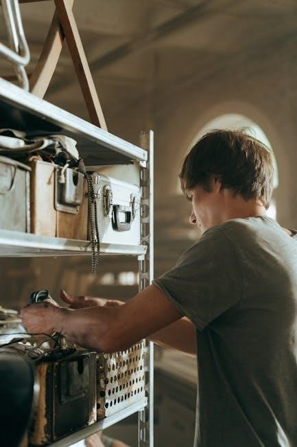 Perform monthly inspections of the garage door opener system; Check for proper alignment of sensors, clean photo eyes, and ensure all screws and bolts are tightened. Inspect the door’s balance and lubricate moving parts regularly. Verify that the emergency release works smoothly and test the door’s auto-reverse feature for safety compliance. Address any issues promptly to maintain functionality and prevent potential hazards.